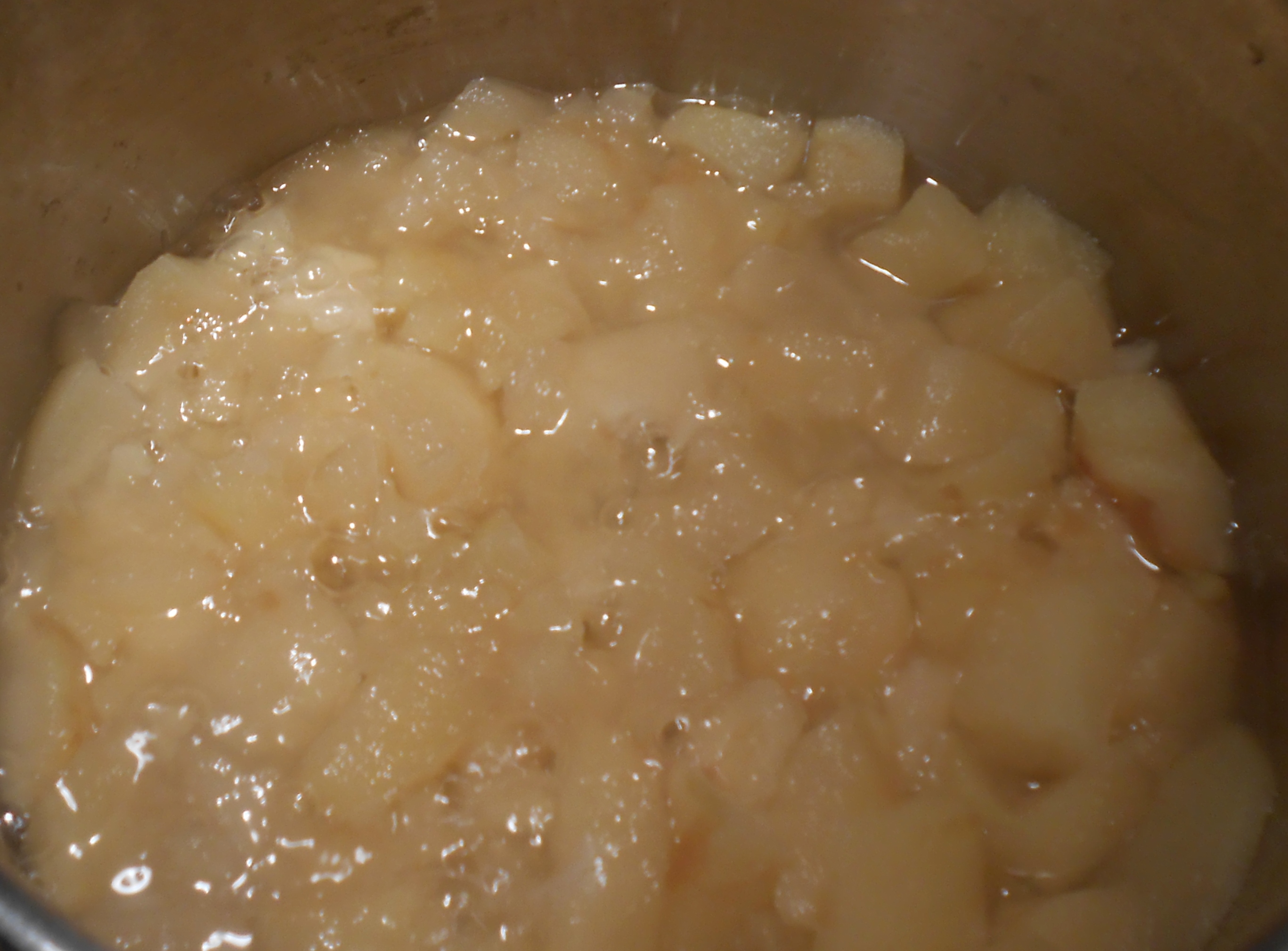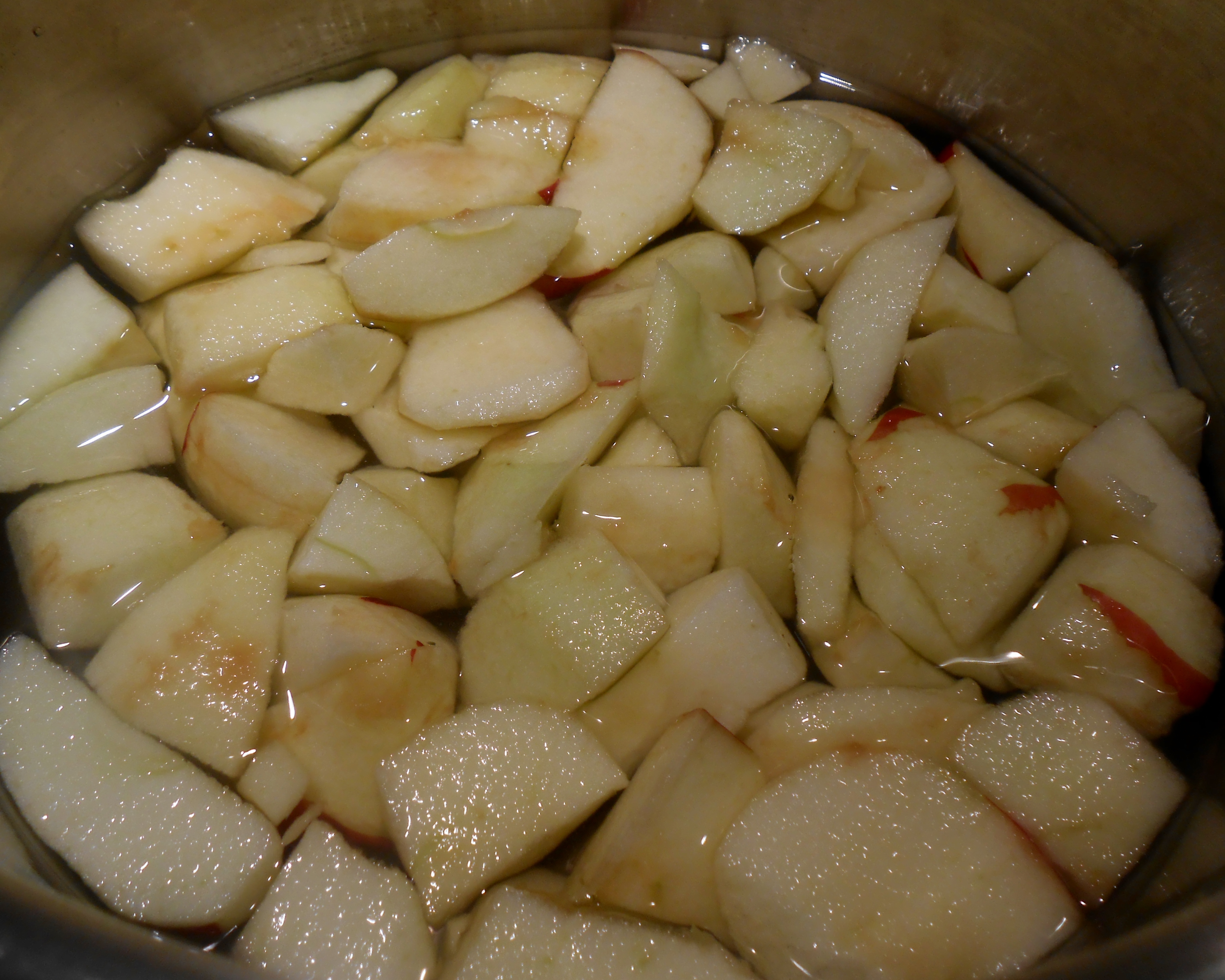 Place apples in a sauce pan with water that just barely covers the fruit.
