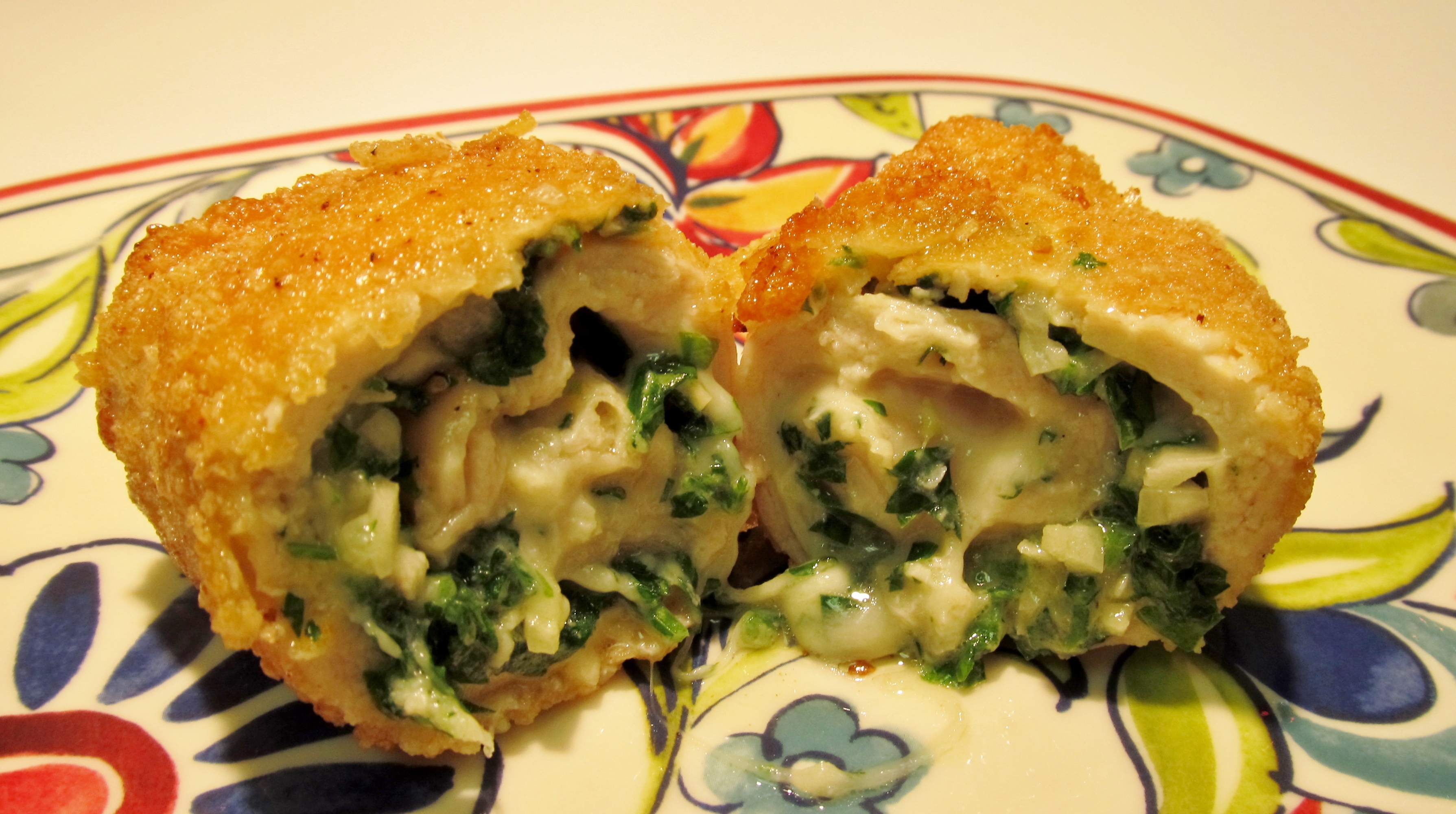 If you are fortunate enough to live in a community where there is a butcher and the art of butchery is still alive, then just ask your butcher for very thin chicken cutlet. If you are like me, then you do not live near an old time butcher and must pound those cutlets yourself. I first rinse the chicken and place plastic wrap on it. Use the smooth end of a meat mallet to pound the cutlets very thin. Not paper like scaloppini, just thin. You don’t want the chicken after cooking to be a thick chewy mass with hardly enough filling to go around. Once the cutlets are pounded thin, place aside.