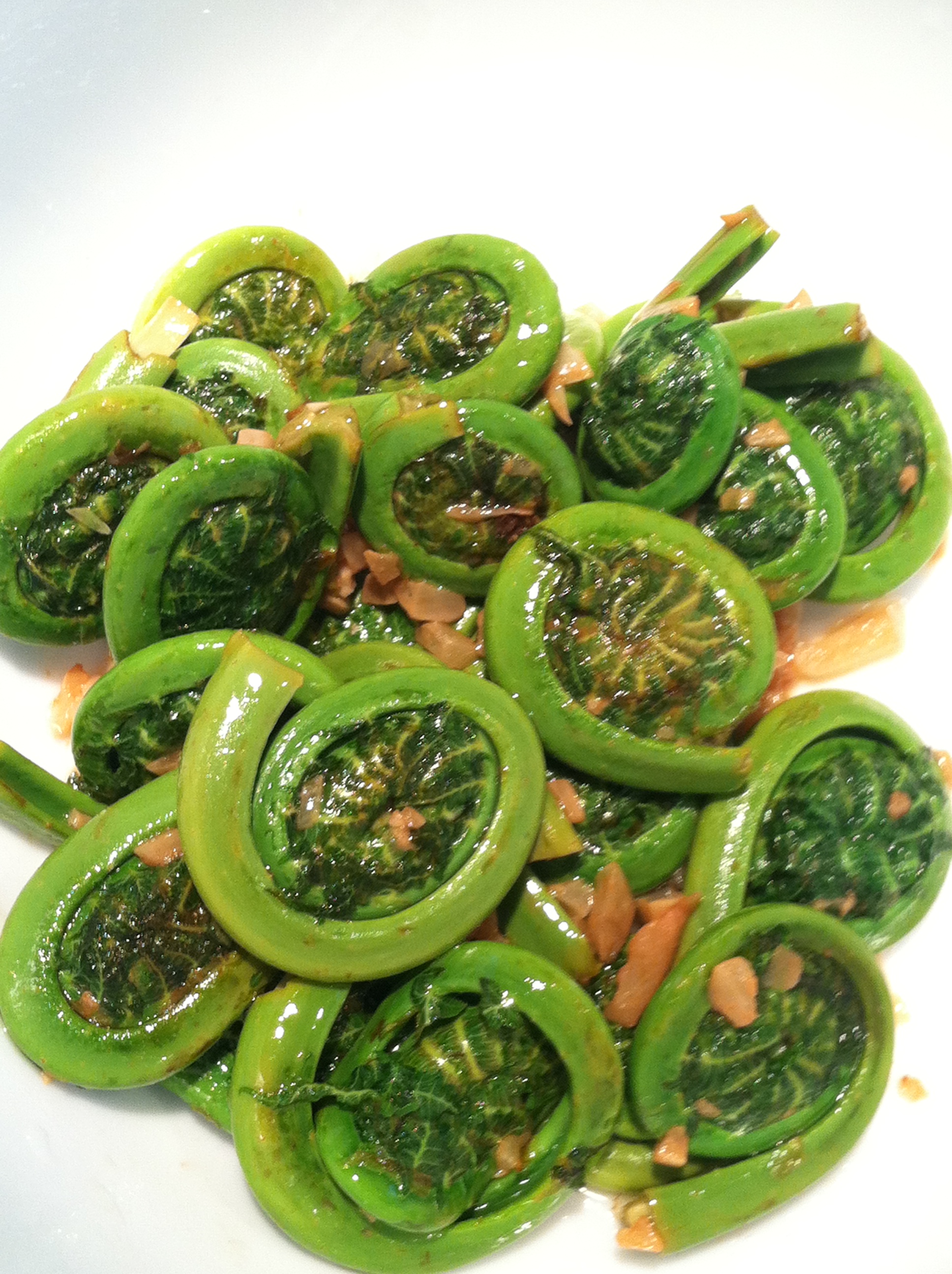 “Fiddleheads Sautéed with Garlic & Oil” by Liz Conforti, Forget What You Know About Wheat(c) 2014