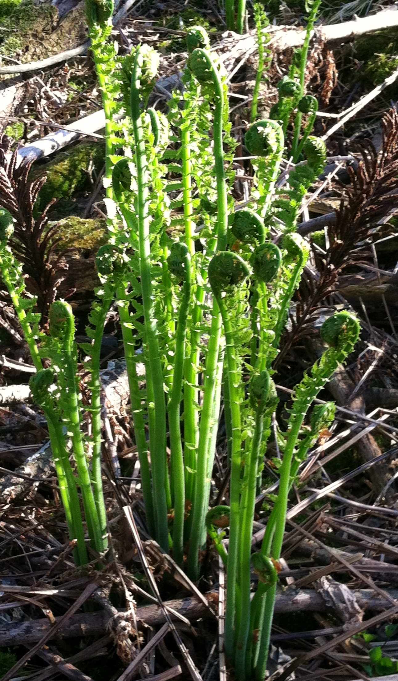 We chose to do some foraging and during our walk my friend pointed out “Fiddleheads”, packed with chlorophyll and slightly earthyin flavor, these baby ferns stand as a symbol to all living creatures that the ground will thaw and winter is over. Fiddleheads are coils, or furled fronds, of baby ferns. In this state they are a vegetable. Each coil will grow into its own frond (fern leaf). I learned to only pick the newest growths, closest to the ground. The fiddleheads must be very tightly coiled with a short stem. They are abundant and can be found on just about any side road, dirt road or path.