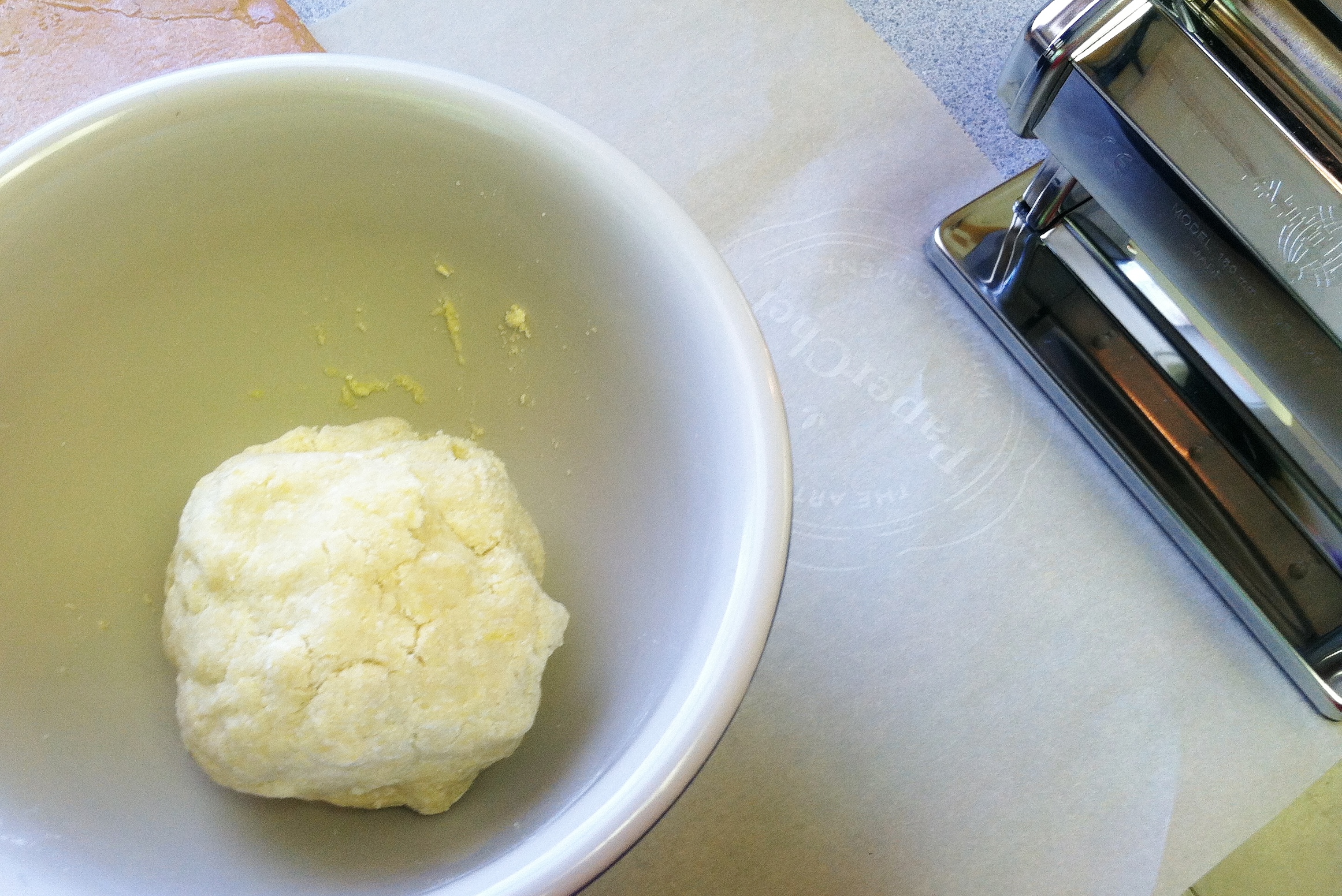 Making the Pasta Dough: click here for Kitchen Wisdom Gluten Free Homemade Pasta recipe. Once made, knead the dough into a ball and place in a bowl. Cover the bowl with plastic wrap and pluck 2” clumps as necessary. Knead each clump a bit to make the dough warm and pliable.