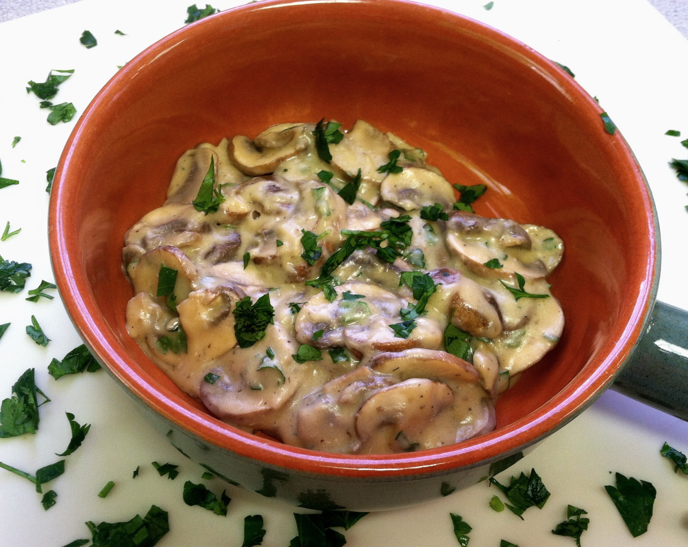 Fold the mushrooms into the sauce and thoroughly coat, sprinkle with parsley and serve immediately.
