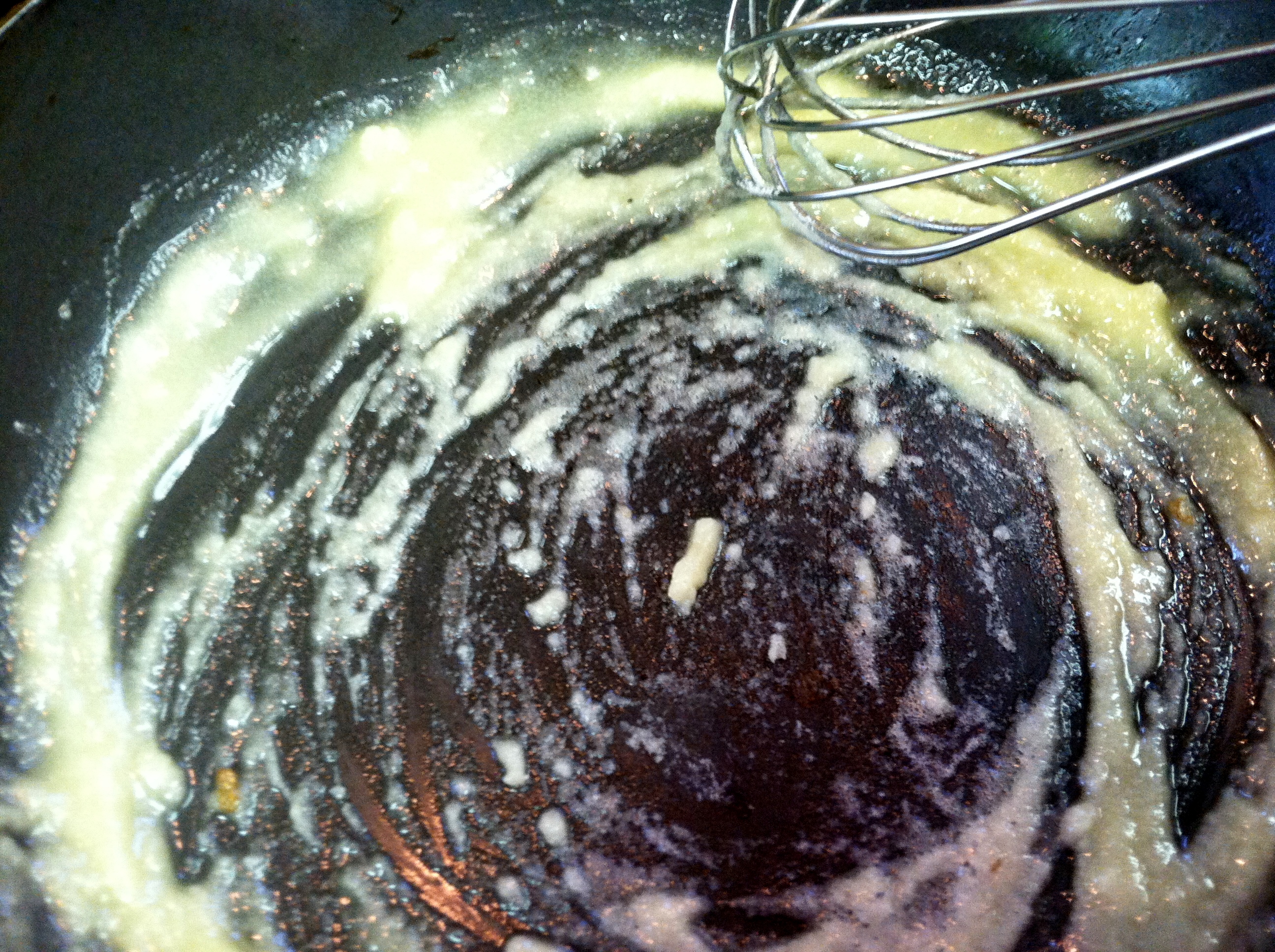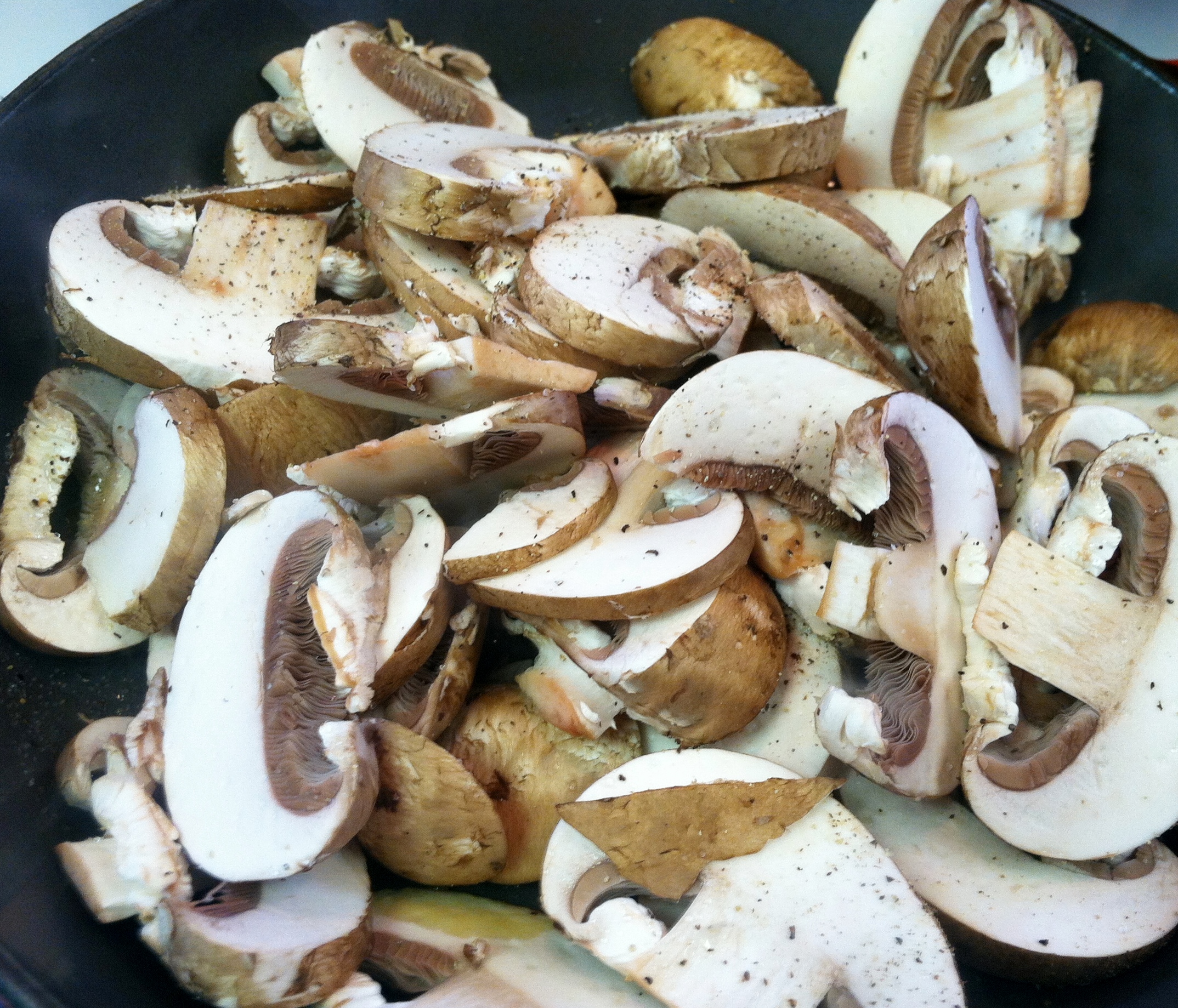 Prep & Cook the mushrooms: wipe them clean and slice them thin. Add 2 tablespoons of butter to a sauté pan, add the sliced mushrooms, sprinkle with salt and pepper and toss to coat the mushrooms in the melted butter. Raise the heat to medium high, place a lid on the pan and allow the mushrooms to sweat out their liquid. Once the have shrunken and are cooked, remove them and set aside. Reserve the mushroom cooking liquid and set aside. Separate yolk from egg and set it aside.