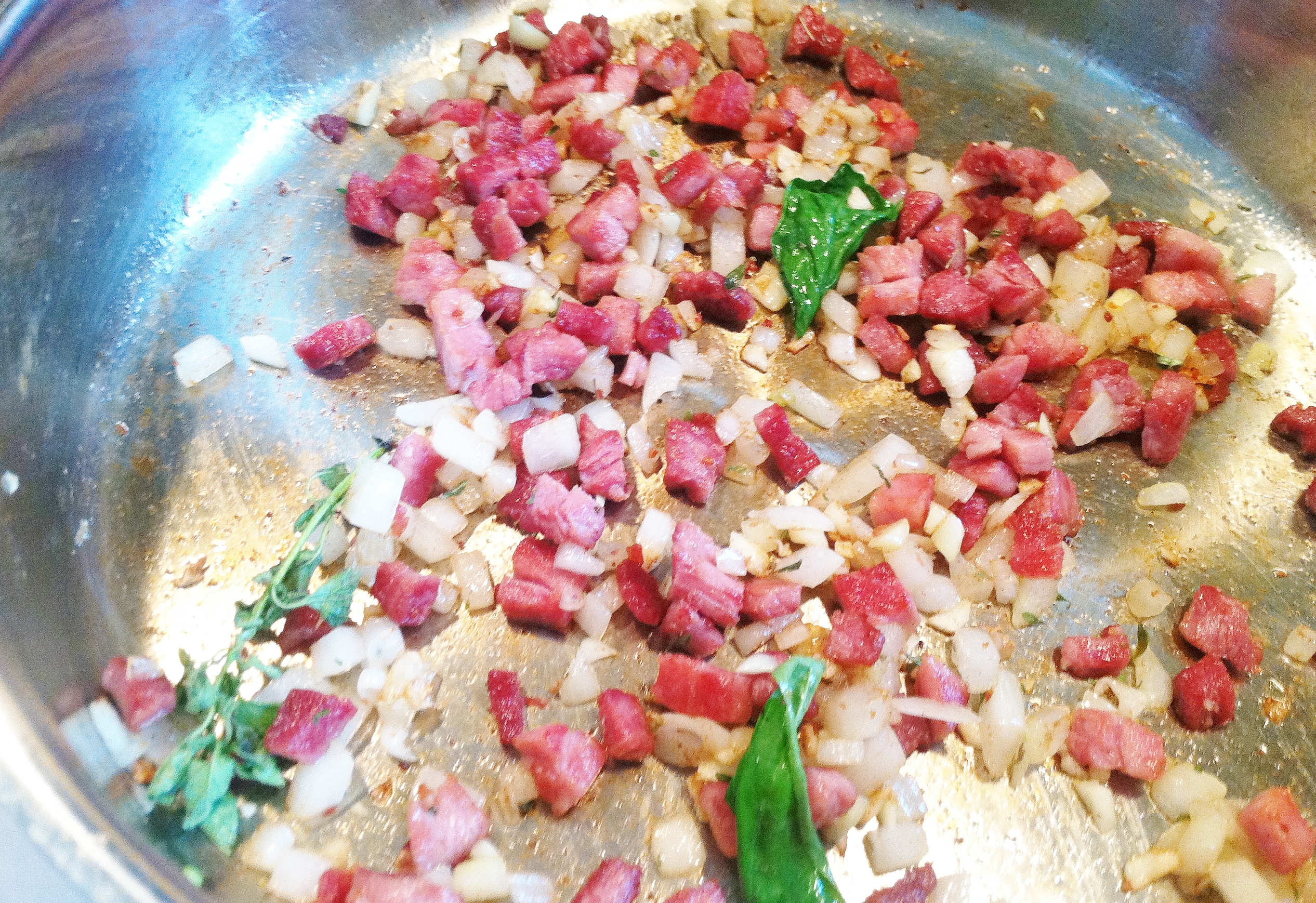 8 ounce Ham Steak, cubed small (or Pancetta)