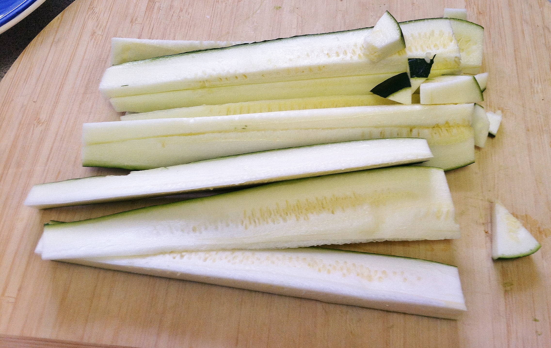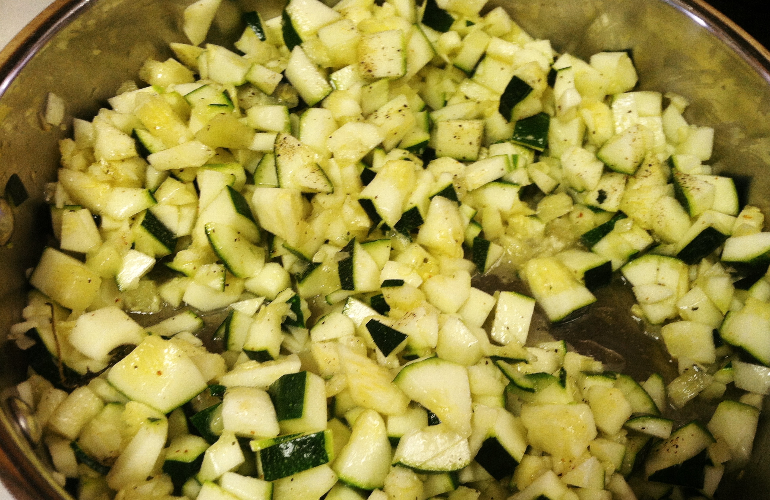 Clean and finely chop all of the zucchini into very small cubes. Finely chop the garlic. Set all aside.