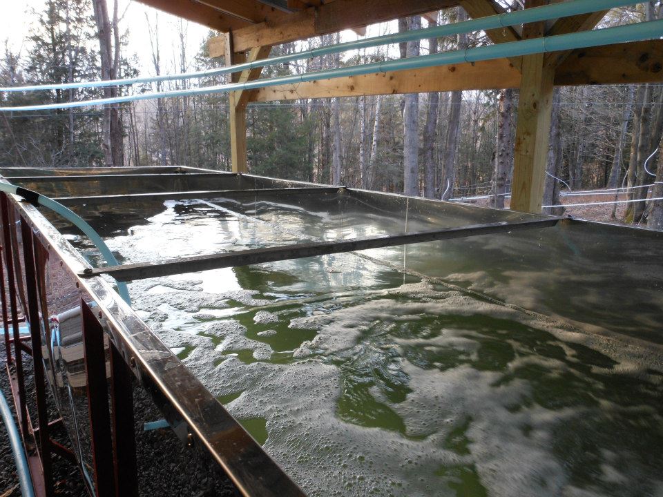 Sap has a sweet content to it; this year’s sap in Franklin County Vermont ran at around a 2% “sweetness”, which Brenda states is ideal. This year it took approximately 43 gallons of sap to yield 1 gallon of Vermont Pure Maple Syrup. Every year is different as the sugar release and its content has to do with weather conditions. Once the sap flows and is collected it is boiled down to create syrup. Maple Syrup Manufacturing techniques vary by Sugar Maker, as does the equipment. Equipment will vary the amount of time to boil and total syrup yield.