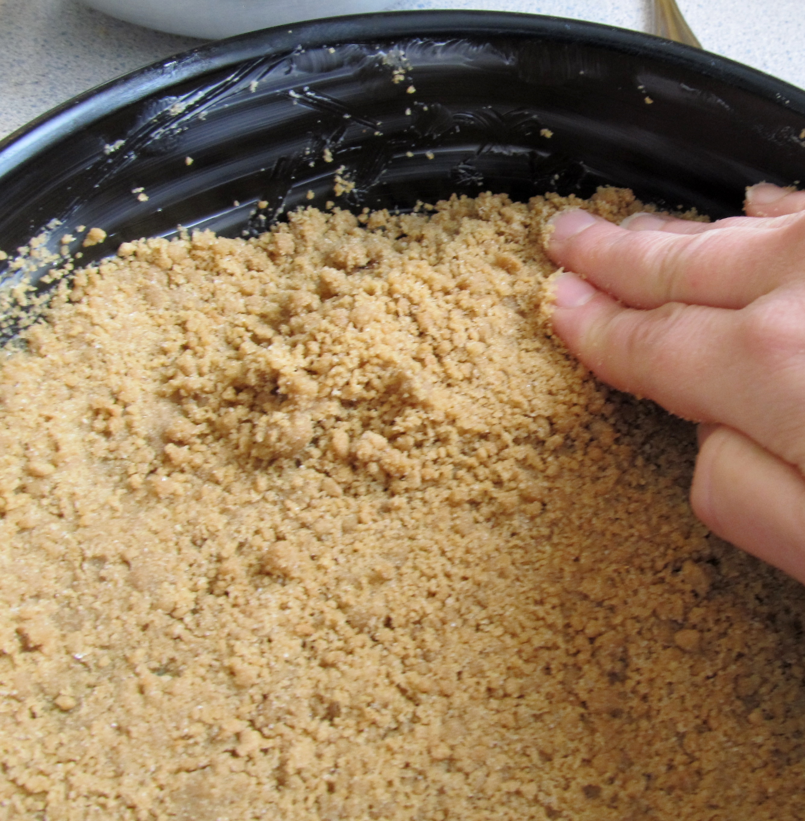 To make the Crust: Melt butter, process gluten free “graham” crackers to crumbs in a food processor. Place crumbs in a small bowl, with fork toss in sugar, mix thoroughly. Gradually pour in melted butter while tossing with fork.